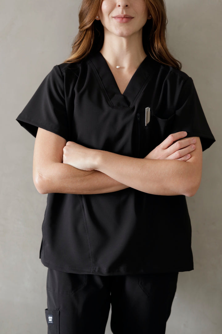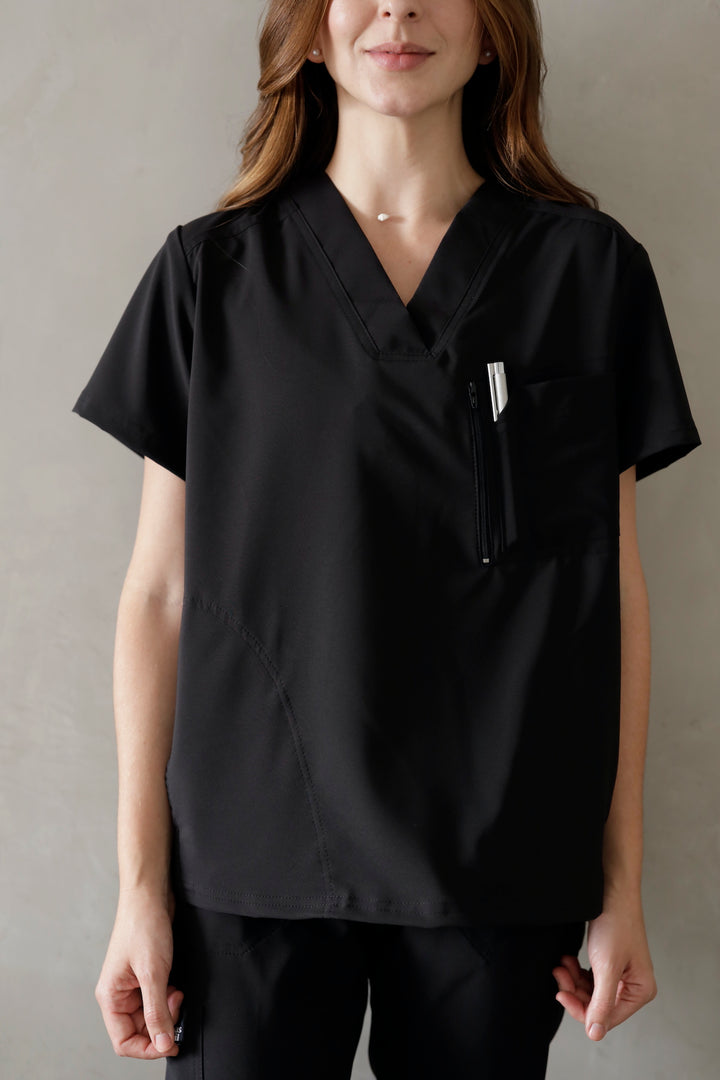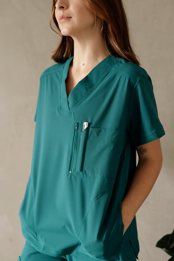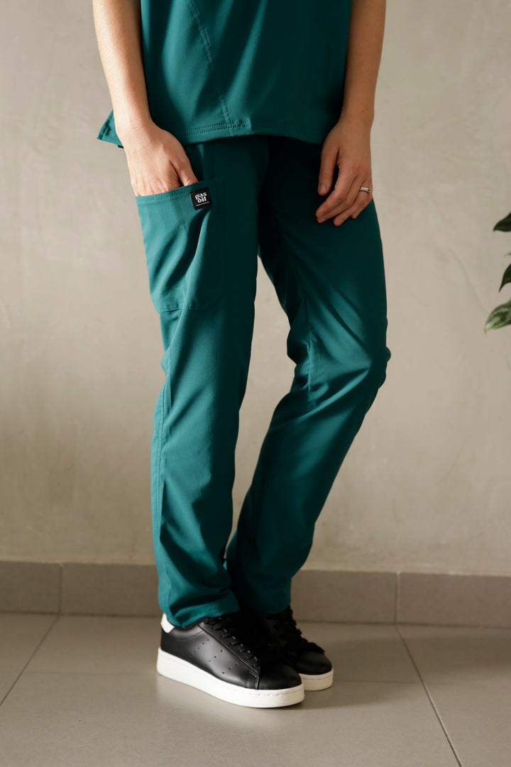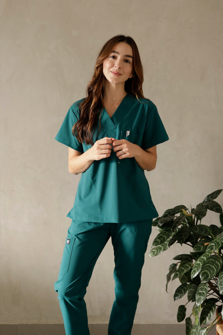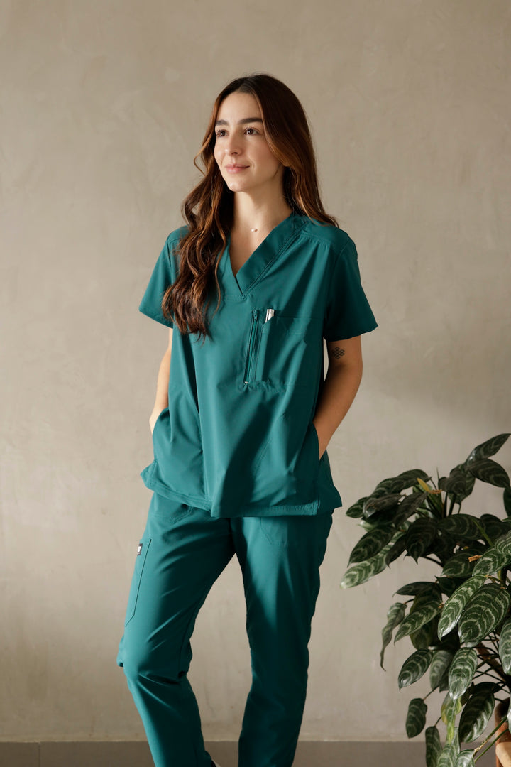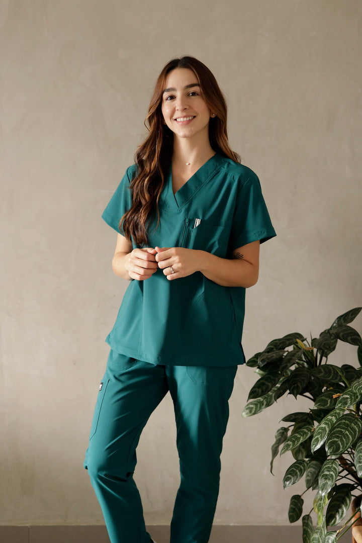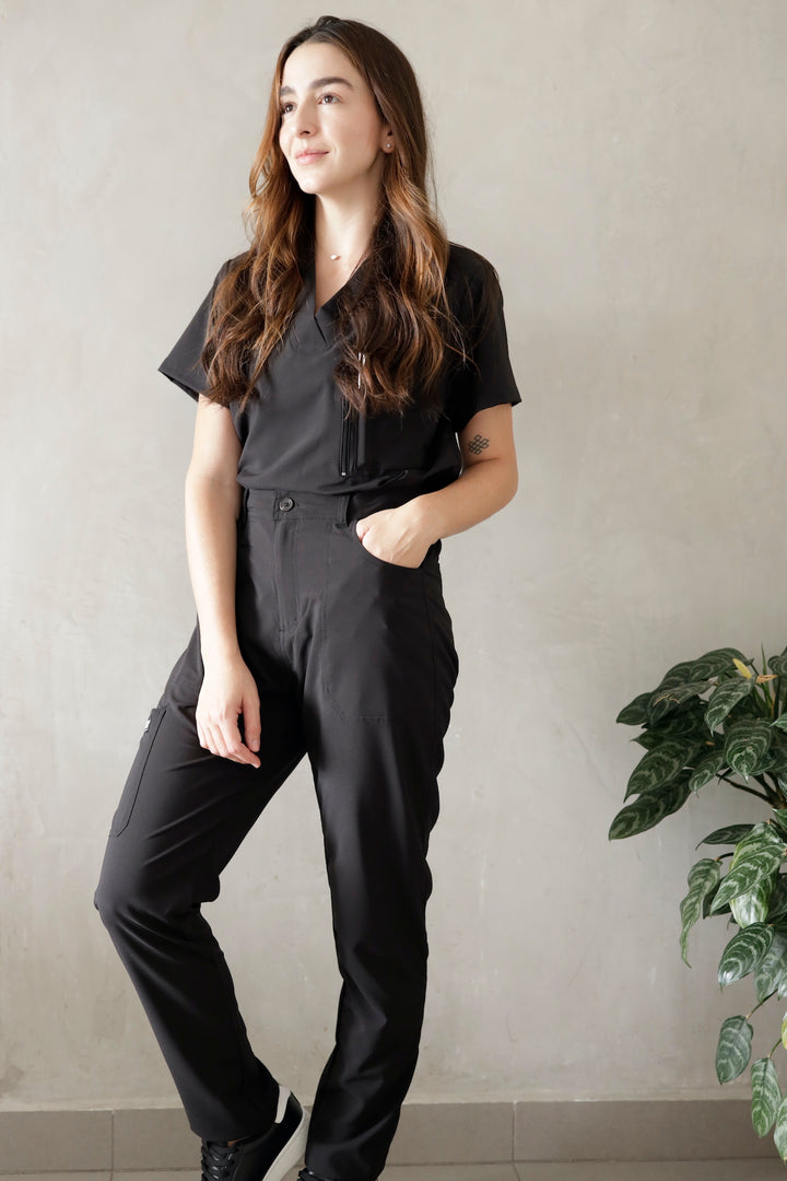 Este uniforme es ideal para mujeres que trabajan en el área de la salud como médicas, odontólogas, cosmetólogas, o quienes cuidan niños, adultos mayores o cualquier área que requiera de tela antifluido Esta referencia está disponible para mujer en tres colores: azul navy, verde militar y gris.